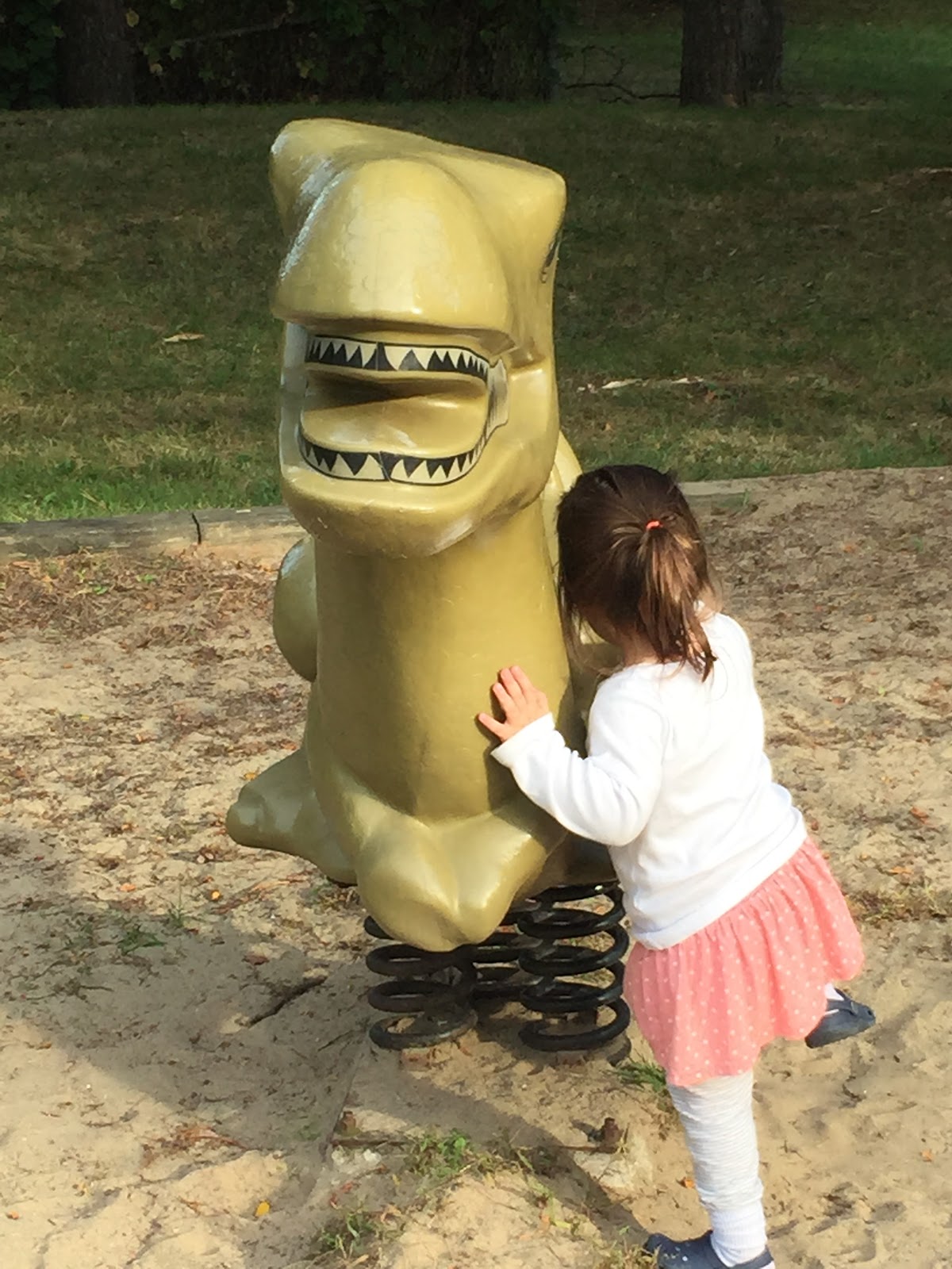 I nervously went to church by myself on Sunday with the two girls. I packed a bunch of snacks and activities, and we made it through with no issues! I was so proud of Maggie, so we went to the school playground afterward.