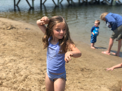 Later that evening we decided to take the girls to see the women's DCFC soccer game (Grandma watched Ben for us - thank you!). It is seriously so much fun, and both girls had a great time! One of the teams that Maggie competed against this spring was there together, and Maggie quickly bonded and became part of their gang. Evie instantly made friends with another girl in the bleachers (I guess she's not my shy one anymore!), and was busy playing all night.